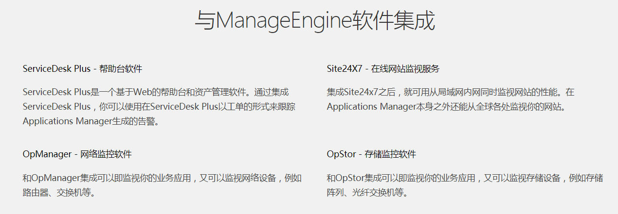 卓豪Applications Manager是針對企業各種業務監控管理(lǐ)需求推出的應用性能監控管理(lǐ)解決方案,是一個(gè)主動式的業務應用系統的可(kě)用性及性能管理(lǐ)解決方案,可(kě)以保障Web應用系統滿足最終用戶的訪問需要。。它采用了無監控代理(lǐ)(Agentless)的最新技(jì)術(shù),易于部署的Web架構,可(kě)以對不同的業務系統、應用和(hé)網絡服務(如服務器(qì)、操作(zuò)系統、數(shù)據庫、Web服務、中間(jiān)件、郵件系統、其他關鍵應用等)進行(xíng)多(duō)角度、深層次、更清晰地遠程監控和(hé)管理(lǐ),充分滿足金融、電(diàn)力、政府、煙草、大(dà)企業等用戶對各種關鍵業務和(hé)數(shù)據中心的監控管理(lǐ)需求。免費版支持監控5個(gè)對象!