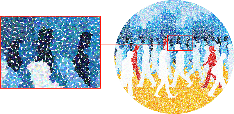 DataVisor的核心技(jì)術(shù)是用戶分析引擎,目前該項技(jì)術(shù)正在申請(qǐng)專利。一種簡單有(yǒu)效的了解無監督檢測工作(zuò)原理(lǐ)的方法,就是将其類比于點彩派繪畫(huà)風格。當近處觀察畫(huà)中任何一個(gè)單獨的點時(shí),似乎每一個(gè)點和(hé)其他點差異性很(hěn)小(xiǎo)。然而,如果你(nǐ)退後一步,觀察整個(gè)畫(huà)面的全景時(shí),你(nǐ)就可(kě)以發現一些(xiē)規律。同樣的道(dào)理(lǐ),DataVisor無監督檢測算(suàn)法通(tōng)過全局分析線上(shàng)服務所有(yǒu)用戶行(xíng)為(wèi)特征,可(kě)以在無需訓練數(shù)據或數(shù)據标簽的情況下,高(gāo)效地找到有(yǒu)組織的欺詐群組。
