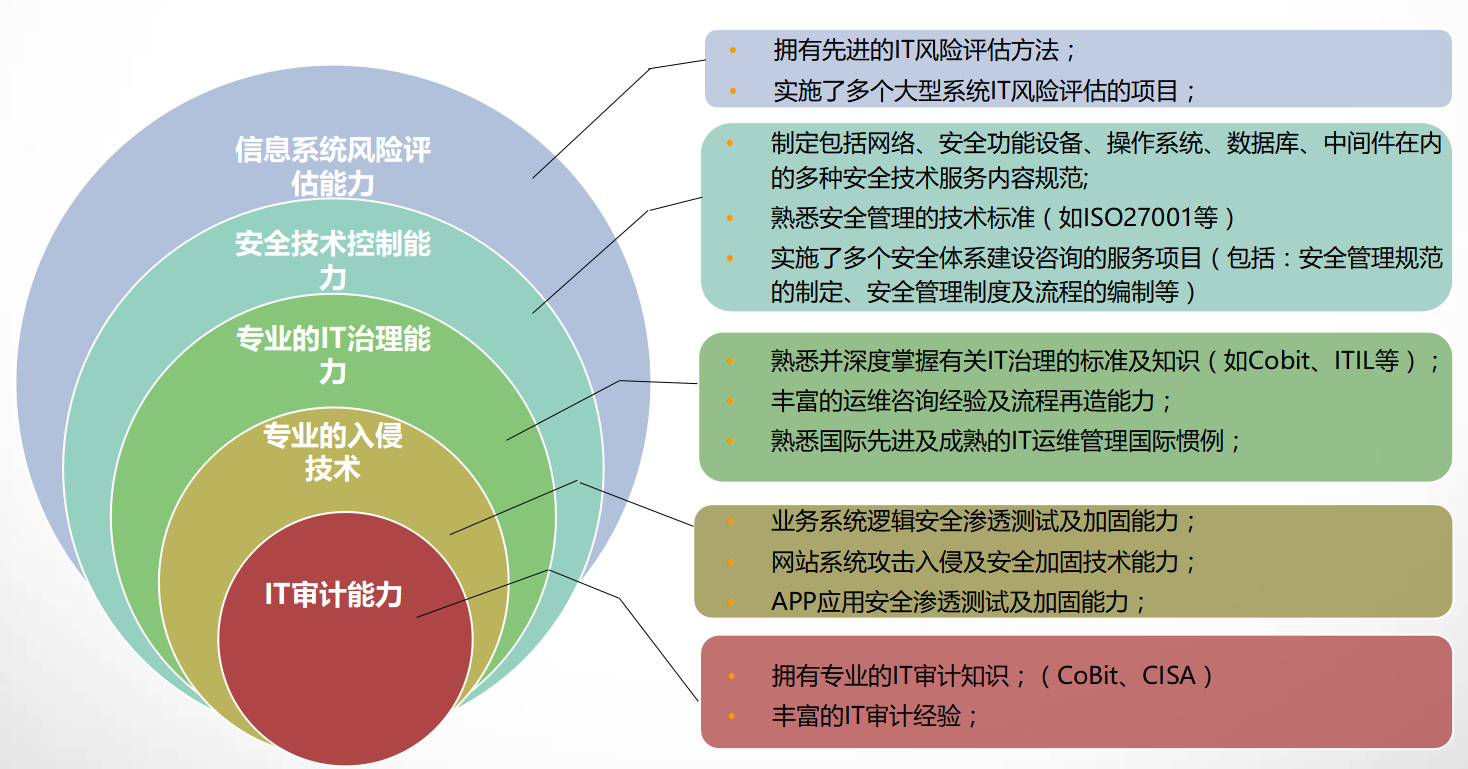 通(tōng)過對目标進行(xíng)安全檢查和(hé)漏洞掃描,組織安全專家(jiā)對漏洞進行(xíng)驗證評估、滲透測試和(hé)代碼審計(jì)等,全面了解信息系統的漏洞,增強信息系統的穩定性和(hé)安全性。