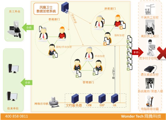 3. 解決根本問題:對于未采取任何信息安全手段的企業來(lái)說,相比較于其他類安全産品,鳳凰衛士(安騰)數(shù)據加密系統是直接防護并作(zuò)用于數(shù)據文檔信息載體(tǐ)的,從根本上(shàng)解決了信息洩漏的根源問題。