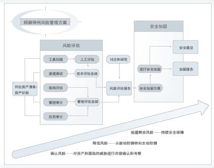 網禦神州通(tōng)過風險管理(lǐ)方案帶您走出困惑,通(tōng)過有(yǒu)效的IT安全風險管理(lǐ)保障信息安全,幫助組織從安全的角度控制(zhì)IT風險。網禦神州風險管理(lǐ)方案通(tōng)過風險評估工作(zuò)對組織面臨的信息安全風險和(hé)威脅進行(xíng)全面檢查、評測和(hé)提供安全建議,采用安全加固工作(zuò)對組織面臨的信息安全風險進行(xíng)有(yǒu)效的消除、轉移、規避、控制(zhì)和(hé)管理(lǐ)。使組織的信息系統在面對信息風險方面做(zuò)到未雨綢缪,為(wèi)組織信息系統提供持續安全保障。
