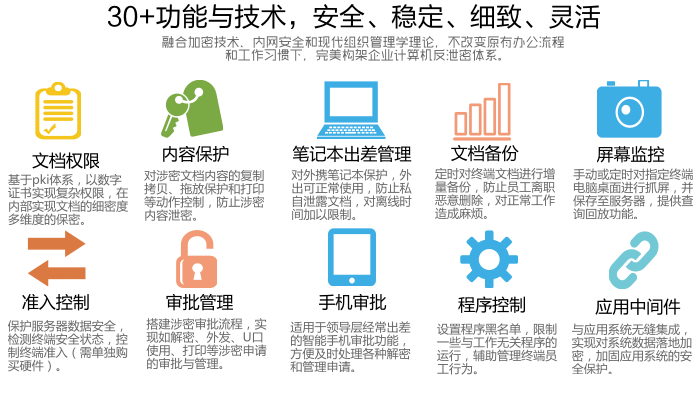 易用性:√ B/S架構管理(lǐ)員通(tōng)過浏覽器(qì)可(kě)以在任意一套設備做(zuò)策略,流程簡單,審批就像聊QQ。