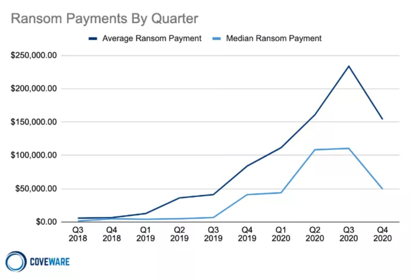 Coveware:2020年Q4勒索軟件費用降至15.4108萬美元 同比下降34%. 2021-02-04